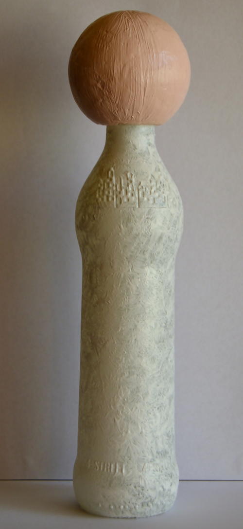 Use the white paint to add an uneven wash to the bottle and allow to dry. Do not paint the base of the bottle, but make sure that you paint all the way up to the polystyrene ball.