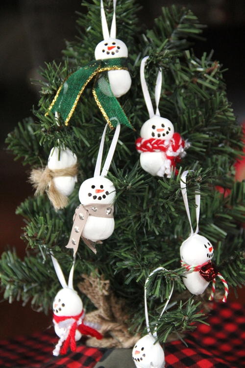 From the Designer: "I'm from Oregon, where hazelnuts are abundant. What better way to use that bounty than to turn them into cute ornaments for the tree? These make great gifts because they're unique and can be personalized for a recipient with whatever you choose to use as a scarf around the neck. Maybe team colors for a sports fan or school colors for a teacher? With just a few supplies you can cover your tree with frosty friends!"